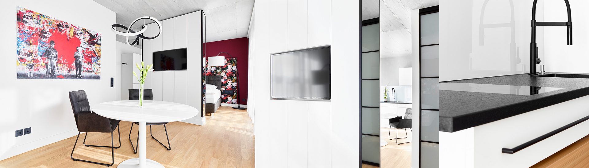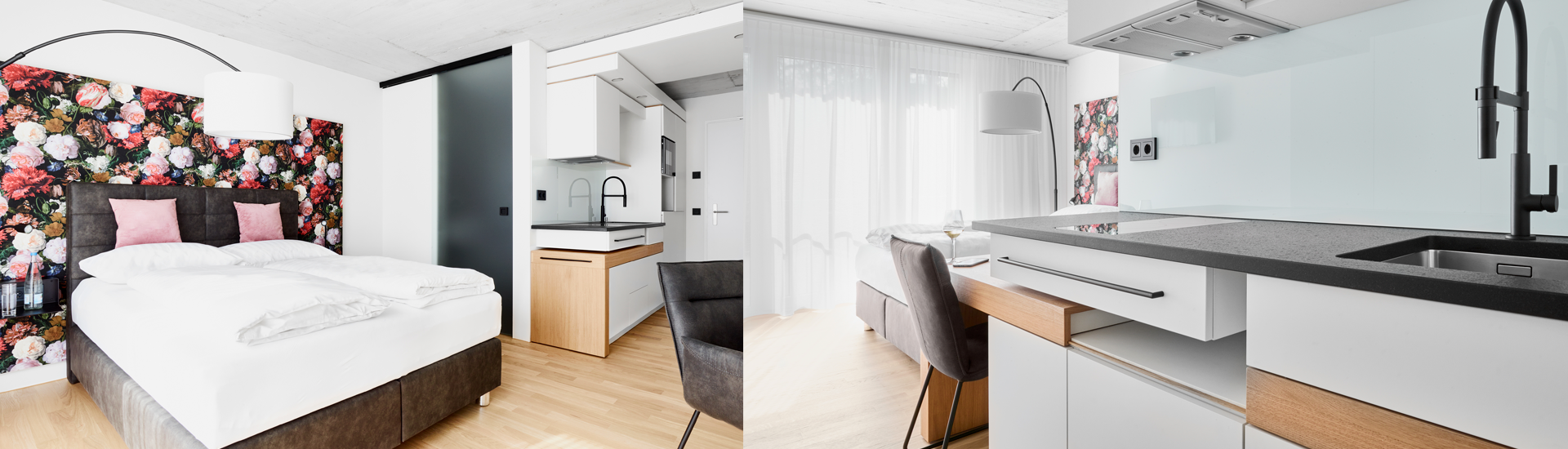 In unseren 23 Zimmern und Suiten erwartet Sie ein ansprechendes und modernes Ambiente. Mit hochwertigem Inventar ausgestattete Küchenzeilen, geschmackvolle Bäder und im zeitlosen Design gestaltete Wohn- und Schlafräume sorgen dafür, dass Sie sich in Ihrem temporären Domizil rundum wohlfühlen können. Weitere Informationen erhalten Sie hier.